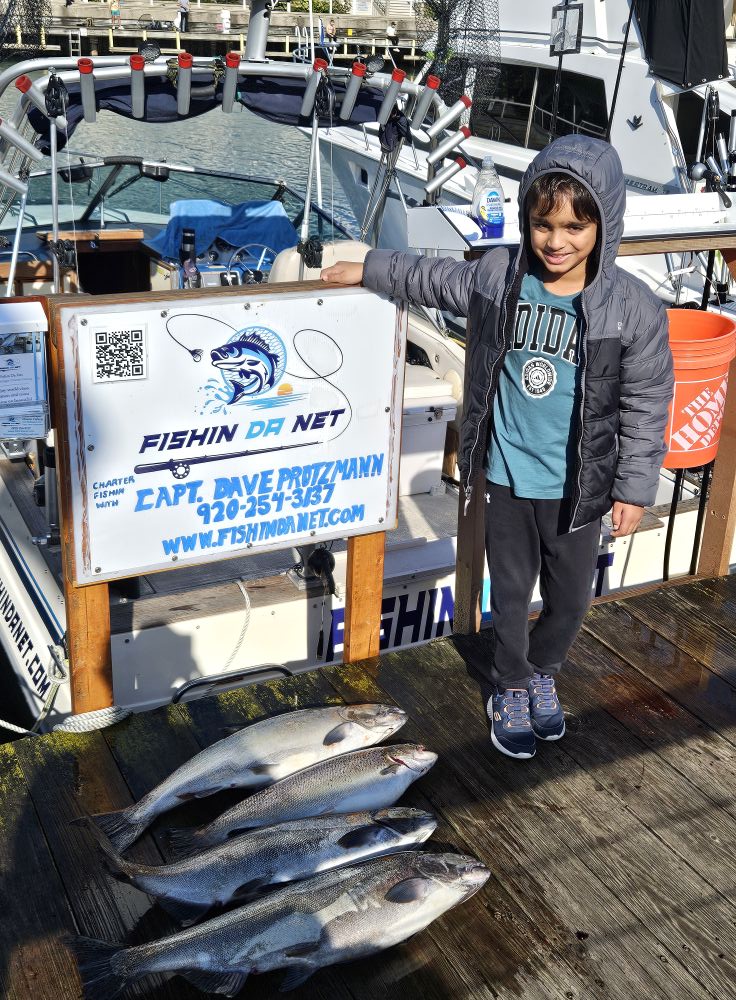 This morning, Norman treated his son to a charter for his birthday bringing his other son, father, and father in-law to round out the crew. The birthday boy really wanted to catch some king salmon so we ventured out targeting kings staging in shallower water. The crew brought 3 king salmon to Da Net to meet their demise along with one nice chunky brown trout. A few other fish were lucky to escape the grasp of our hooks to swim another day. This season is quickly winding down. The weather was great this morning and the forecast looks good for the next week or so. I have some openings if you want to get out for a late season adventure! Capt. Dave Protzmann (920) 254-3137 www.fishindanet.com